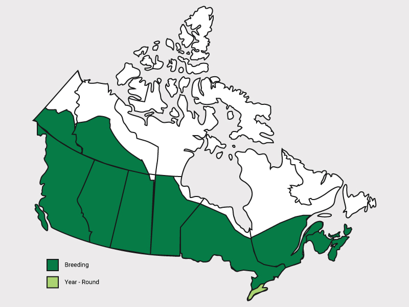 The group in Canada spans from Nova Scotia to the Yukon and is primarily found in forested areas.